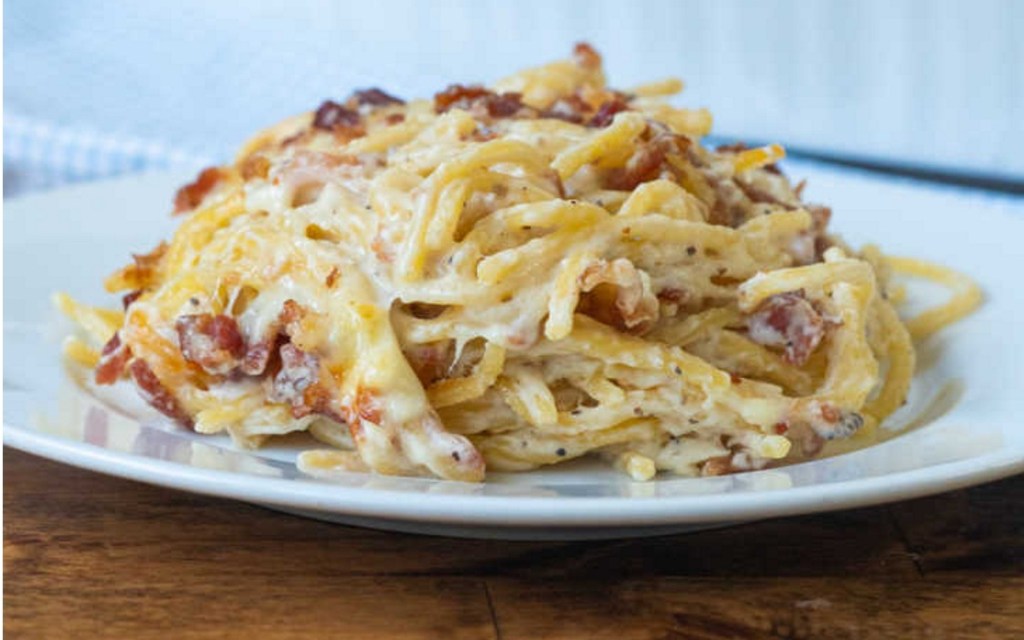 - Stir in 2 cups of the mozzarella and 1/2 of the bacon. Season to taste with salt and pepper and transfer to a 9×13-inch baking dish.