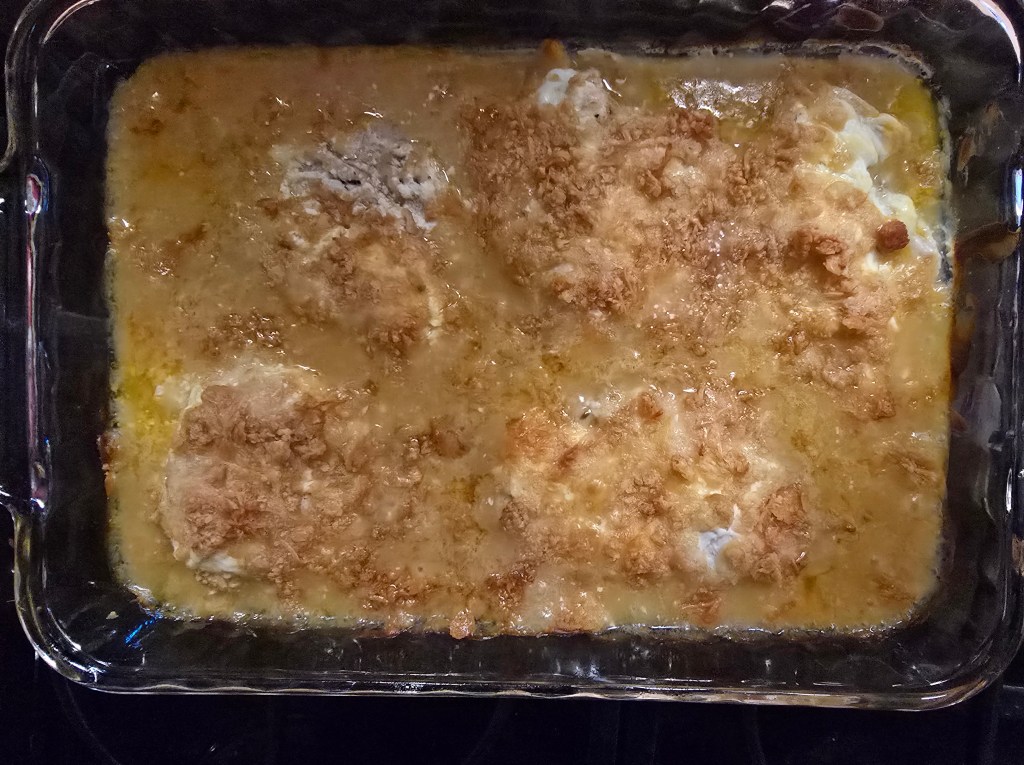 Bake 40 minutes until chicken is cooked and topping golden brown and crispy.