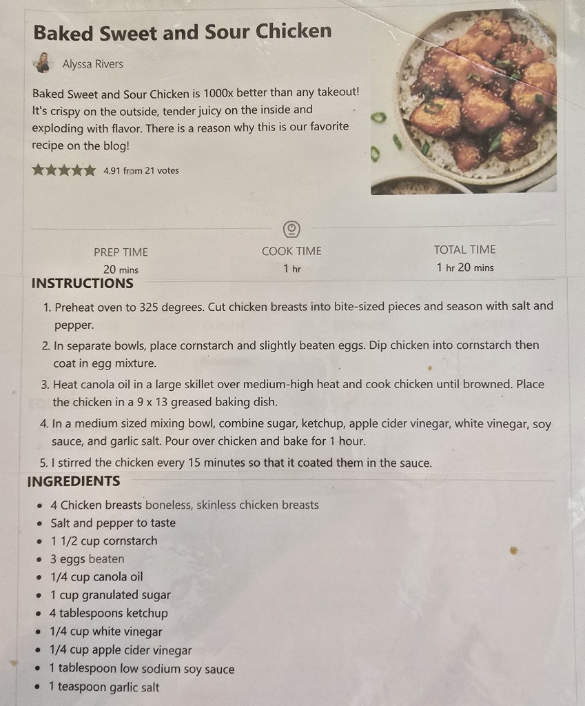 Baked Sweet and Sour Chicken